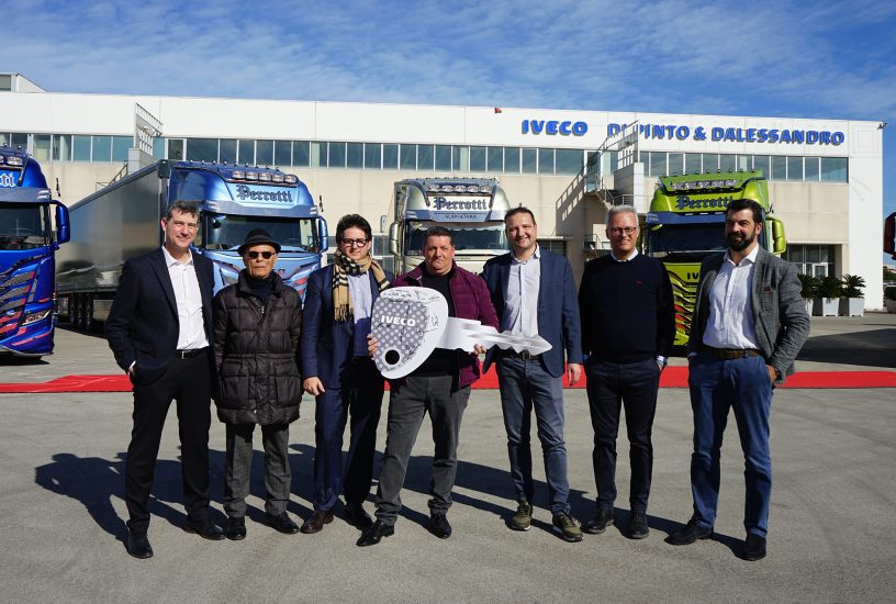 Iveco ha arricchito il parco mezzi della Autotrasporti Perrotti. La cerimonia ha avuto luogo presso la sede di Bari della Di Pinto & Dalessandro, una concessionaria Iveco di riferimento della zona. Hanno partecipato Michele Perrotti, titolare dell’azienda, Mihai Daderlat, Business Director del Mercato Italia Iveco e Bartolomeo e Leonardo Di Pinto, rispettivamente Presidente e Amministratore Delegato della concessionaria.