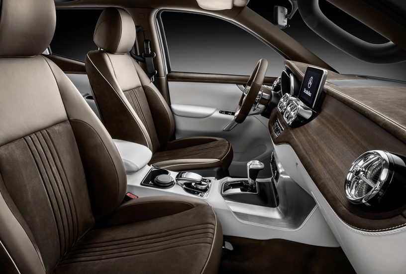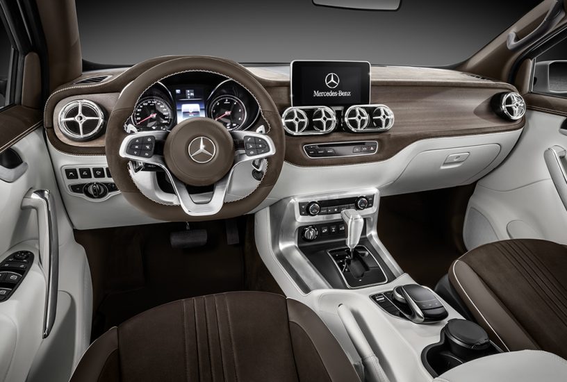Sul pick-up Mercedes-Benz Concept X-Class, Design e finiture di livello si sposano con un telaio a longheroni e traverse, alla trazione 4×4 permanente e motore a 6 cilindri. Il Pick-up premium di Mercedes-Benz Vans offrirà molti comfort presenti sulle automobili, comandi morbidi e sistemi tecnologici avanzati. Ma sotto pelle, il Mercedes X-Class è un vero mulo da lavoro, robusto e in grado di affrontare percorsi impegnativi.