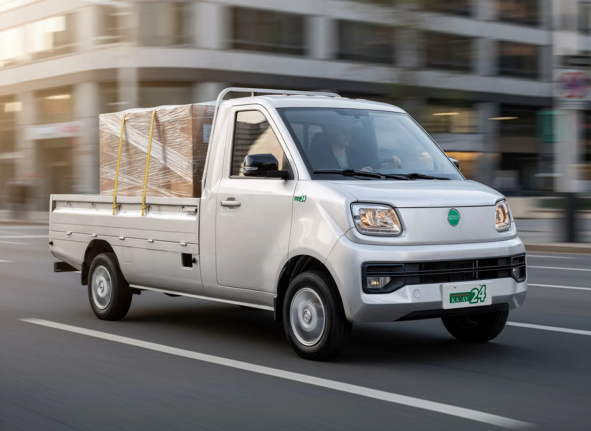 Il Katay 16 ev è 100% elettrico, con motore 15 kW (picco 30 kW), batteria 30 kWh e omologazione N1. Lungo 3.695 mm e largo 1.465 mm, è disponibile in versione furgone o cassonato, con un’autonomia dichiarata di 200 km. La destinazione d’uso è l’ultimo miglio ed il trasporto merci in città.
