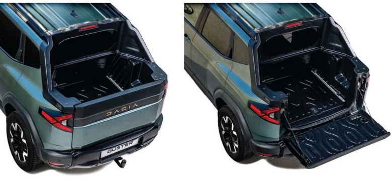 La Duster Pick-Up ha una linea con finiture robuste, un frontale modificato e soprattutto un cassone di carico posteriore di ottima praticità per il lavoro quotidiano. L’abitacolo a quattro porte è rimasto praticamente invariato, tranne il bracciolo posteriore centrale che per motivi di omologazione sostituisce il posto centrale posteriore. Le dimensioni del cassone non sono paragonabili a quelle di un normale pick-up, raggiungendo appena 1.050 mm di lunghezza e 1.000 di larghezza, ma sono comunque sufficienti a trasportare fino a 430 kg di carico. Il piano, inoltre, è dotato di guide metalliche laterali e 4 punti di ancoraggio per aumentarne la funzionalità e fissare oggetti in modo sicuro.