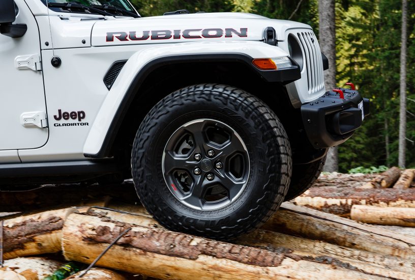 Sono 2 i sistemi 4×4 presenti nella gamma Jeep Gladiator: il 4×4 Command-Trac e il 4×4 Rock-Trac. Il cambio è automatico a 8 marce. Il differenziale posteriore a slittamento limitato Trac-Lok fornisce maggiore trazione e coppia in condizioni di scarsa aderenza. Il badge ‘Trail Rated’ è garanzia di massime performance nel fuoristrada. Altri fattori che concorrono a questo livello di prestazioni sono gli angoli di attacco, pari a 43,6 gradi, l’angolo di dosso, pari a 20,3 gradi, e l’angolo di uscita, pari a 26 gradi. L’altezza da terra è di 28,2 cm. I cerchi della Gladiator sono da 17’’ abbinati a pneumatici da 32’’. La capacità di guado raggiunge i 76 cm, mentre quella di traino i 2.722 kg.
