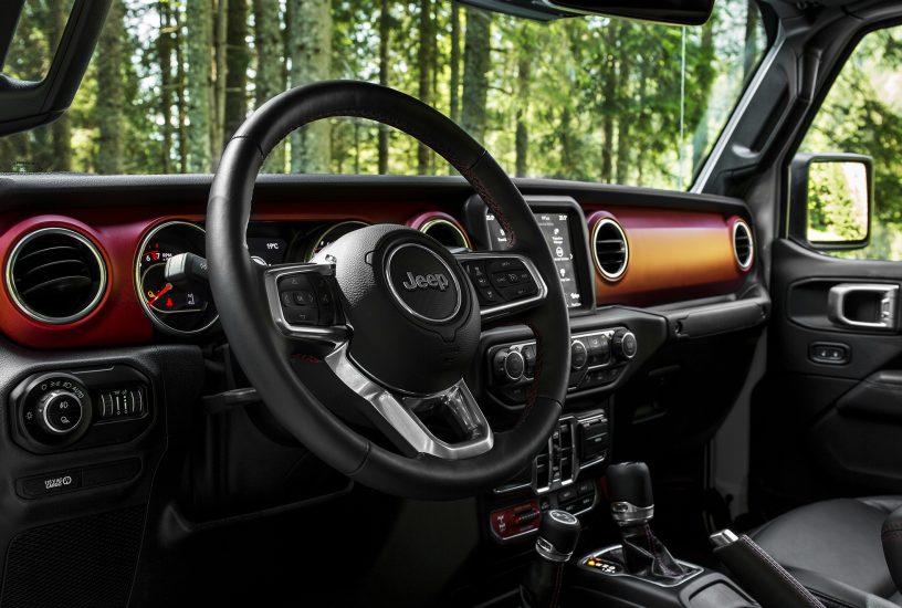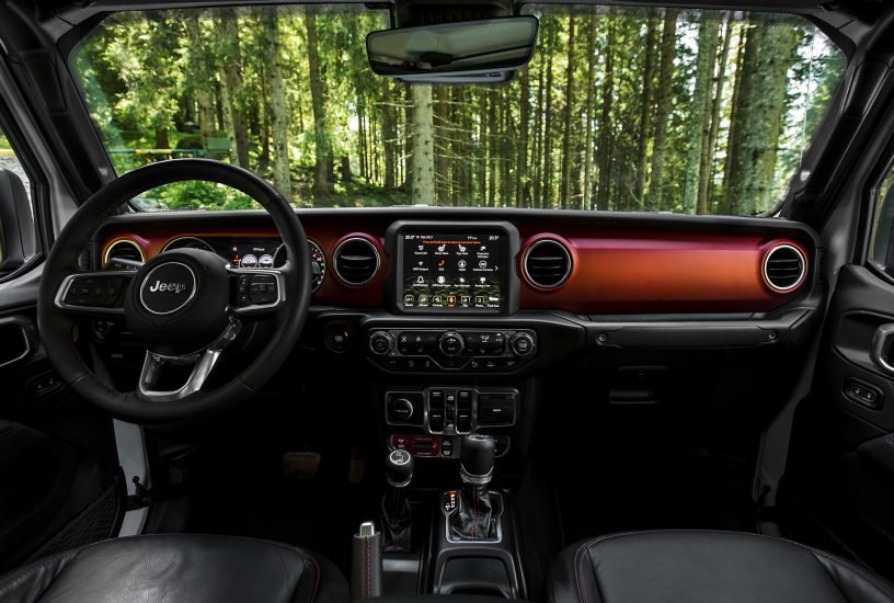Nell’abitacolo della Gladiator spiccano la cura artigianale e l’utilizzo di materiali di qualità superiore. La plancia presenta le classiche forme pulite e le linee scolpite. Gli elementi funzionali, tra cui le manopole del volume e del climatizzatore, le prese di ricarica e connettività multimediale e i comandi del sistema Engine Stop-Start, sono stati progettati per essere intuitivi. Il touchscreen da 7’’ si trova nella porzione superiore della consolle centrale. È dotato del sistema Uconnect di 4^ generazione. Il quadro strumenti offre un display a LED TFT da 3,5’’ o 7’’.