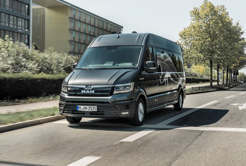 Sono tanti gli accorgimenti studiati dai progettisti MAN per rendere sicuro e pratico il MAN TGE 3.140. Per esempio, per facilitare la salita e la discesa, è presente un gradino d’accesso elettrico, a scomparsa, rivestito con materiale anti-scivolo. MAN ha riservato al veicolo destinato al Falconeri Ski Team un allestimento modulare nel quale i mono sedili possono essere disposti all’interno del veicolo, in funzione della necessità. Per esempio, si possono predisporre i sedili in modo che siano frontali, creando una sorta di piccolo salottino.