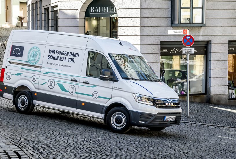 Disponibile nella configurazione da 3,5 tonnellate con tetto alto e un volume di carico di 10,7 m3, la versione elettrica del furgone MAN TGE si ricarica tramite wallbox a CA da 7,2 kW in 5 ore e mezza. Se il punto di ricarica è a corrente continua, con presa di carica combinata e potenza di 40 kW, la ricarica dell’80% della batteria richiede circa 45 minuti.