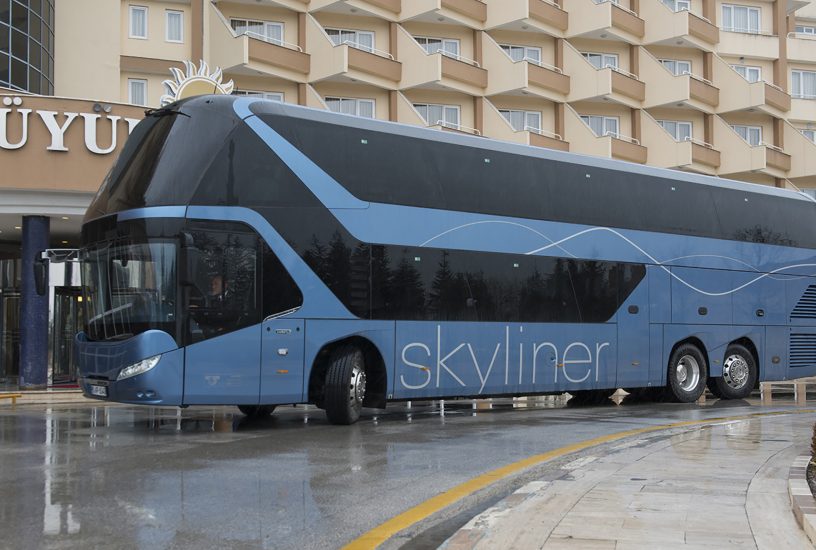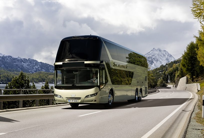 Il NEOPLAN Skyliner è infine un pullman a 2 piani dalle linee chiare e dagli spigoli vivi. L’aerodinamicità del pullman stabilisce nuovi standard nella classe premium degli autobus da turismo. Inoltre il NEOPLAN Skyliner sta conquistando consensi anche tra le aziende di trasporto, come veicolo per i viaggi interurbani.