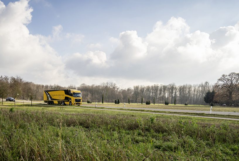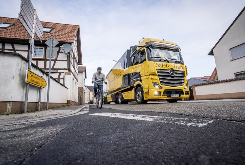 Il sistema di assistenza alla svolta è un elemento sofisticato. È capace di comunicare attraverso una serie di avvisi a più livelli. Per esempio, quando un oggetto fermo o in movimento si trova nella zona di monitoraggio laterale sul lato passeggero, il conducente riceve una segnalazione sulla relativa MirrorCam mentre dal lato passeggero si accende un simbolo triangolare di avvertimento. Se la situazione di pericolo permane, viene allora emesso un ulteriore avvertimento ottico e acustico: la spia lampeggia in rosso e, dopo 2 secondi, diventa fissa. Il cervello di questo sistema è formato da 2 sensori radar di prossimità. È progettato in modo da coprire l’intera lunghezza dell’autocarro, con l’aggiunta di 2 metri in avanti e indietro. Fiore all’occhiello di Daimler Trucks & Buses, l’assistente alla svolta lavora sia su veicoli con rimorchio che senza: basta che il mezzo non superi i 18,75 metri di lunghezza.