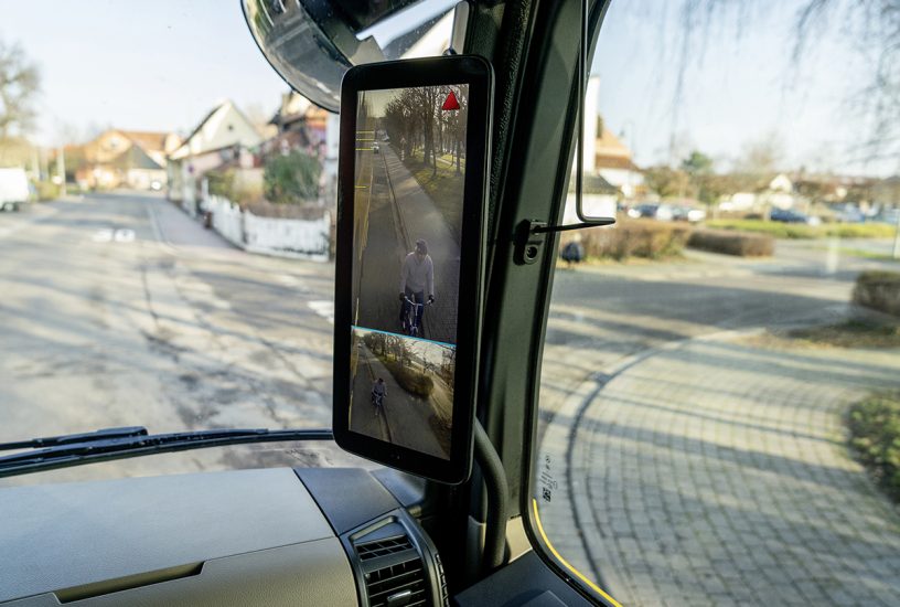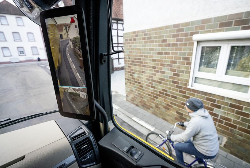 Il primo truck di serie al mondo che monta la nuova MirrorCam è il nuovo Mercedes-Benz Actros. Addio ai tradizionali specchi grandangolari. Ora il conducente si guarda le spalle mediante telecamere digitali e display. In entrambi i lati le telecamere sono montate sul telaio del tetto. I display invece si trovano nei montanti anteriori della cabina. Con questi accorgimenti la Casa di Stoccarda è riuscita ad aumentare la sicurezza, a sgomberare il campo visivo e a evitare gli ‘angoli morti’ dovuti alle curve o a una mancata regolazione degli specchi. Ma i vantaggi non si fermano qui. L’utilizzo delle telecamere permette di ridurre anche i consumi, grazie a un netto aumento dell’efficienza aerodinamica. Infine per le manovre nello stretto o durante la retromarcia i conducenti del nuovo Actros saranno aiutati da una speciale modalità di visualizzazione grandangolare. Le linee di distanza sui display invece contribuiranno a valutare la presenza di veicoli alle proprie spalle nei cambi di corsia.