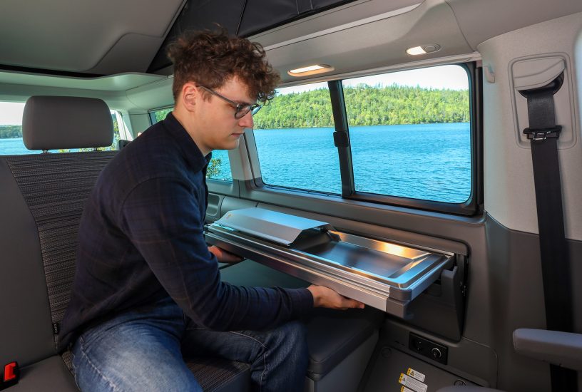 Le versioni Coast e Ocean invece presentano armadietti posteriori e un blocco cucina. Entrambi gli elementi sono realizzati in allumino leggero, come a bordo di un piccolo yacht a vela. Le nuove maniglie in alluminio in tutte le porte della cucina sono pratiche e di stile, così come i pulsanti per l’apertura della superficie della cucina.