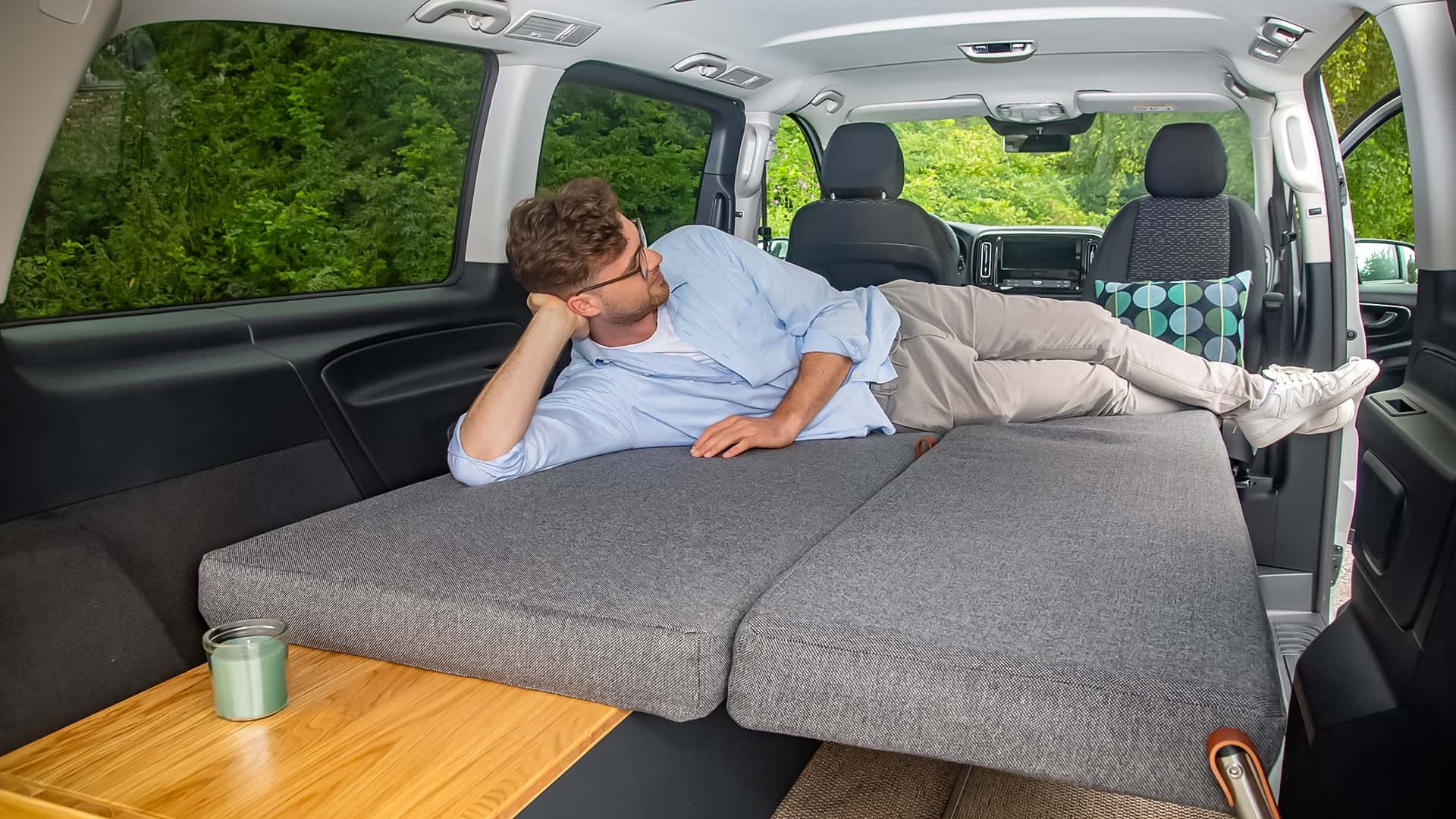 Particolarmente utile il tetto portapacchi in alluminio, che può sostenere fino a 125 kg, ideale per trasportare kayak, surf o box da sci. Disponibile anche la camping box modulare, che trasforma l’interno in un mini camper completo di letto da 195×125 cm, vani di stivaggio, cucina con fornello e lavello, riscaldamento centralizzato e una batteria di grandi dimensioni per alimentare gli elettrodomestici di bordo. Il tutto rimovibile senza attrezzi, restituendo così in pochi minuti il vano di carico originale.