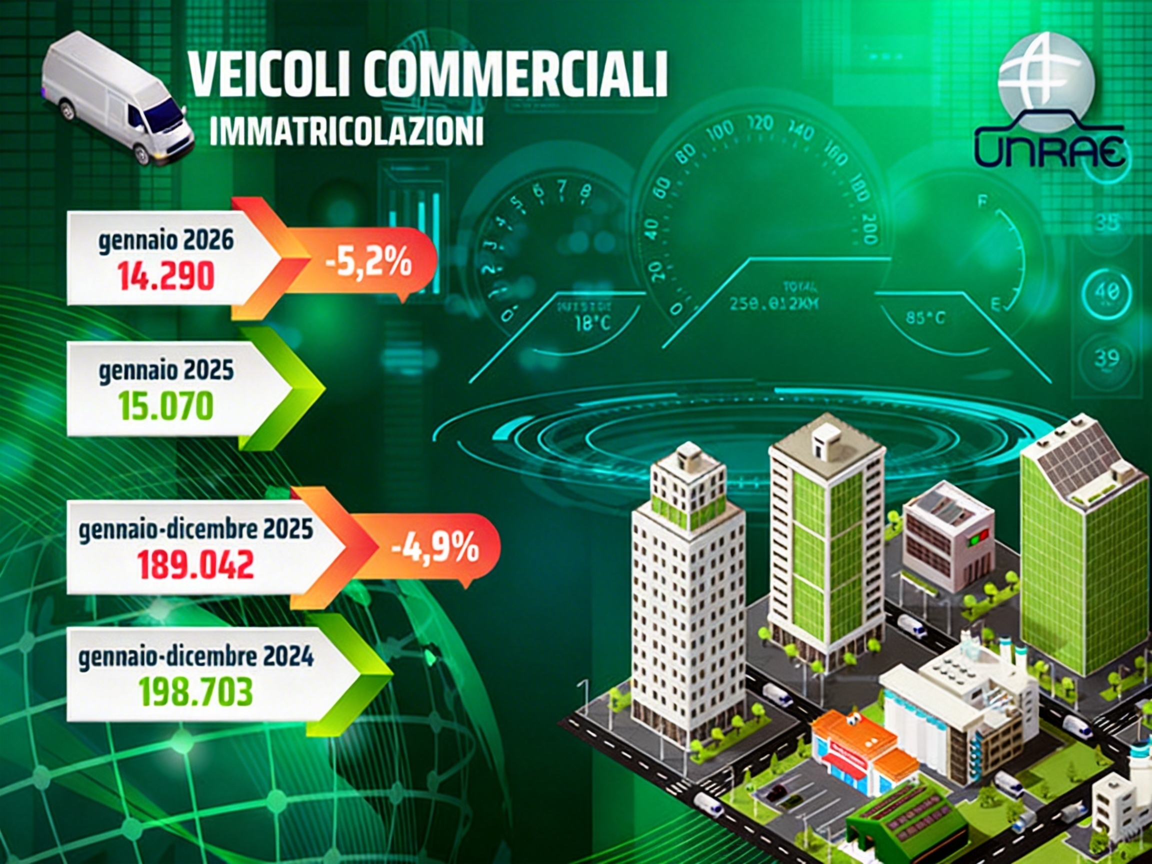 Il mercato italiano dei veicoli commerciali ha aperto il 2026 con il segno meno. A gennaio sono state immatricolate 14.290 unità, in calo del 5,2% rispetto alle 15.070 dello stesso mese del 2025, che a sua volta aveva registrato una contrazione del 16% rispetto a gennaio 2024. Si tratta del terzo ribasso consecutivo.